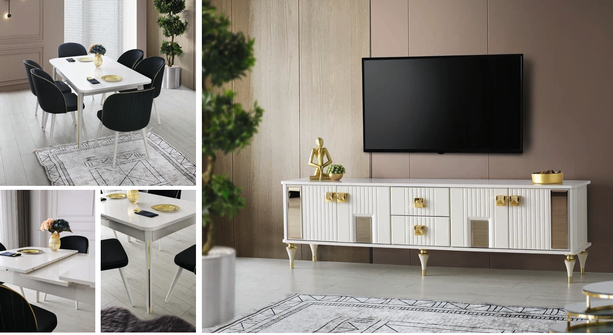 Tisch, Stühle, Konsole und TV-Unit wirken nicht nur als Einzelstücke, sondern bilden gemeinsam ein stimmiges Gesamtbild. Im Alltag praktisch, bei geselligen Runden stilvoll und übersichtlich – ASKAR fügt sich nahtlos in den Raum ein und bleibt über Jahre hinweg zuverlässig.