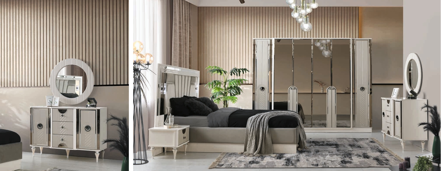Das BAHAR Schlafzimmer kombiniert warme Sand- und Aytaş-Töne mit funktionaler Gestaltung, um Ihrem Raum Ruhe und Balance zu verleihen. Jedes Möbelstück ist sorgfältig proportioniert, um Ästhetik und Alltagstauglichkeit optimal zu verbinden.
