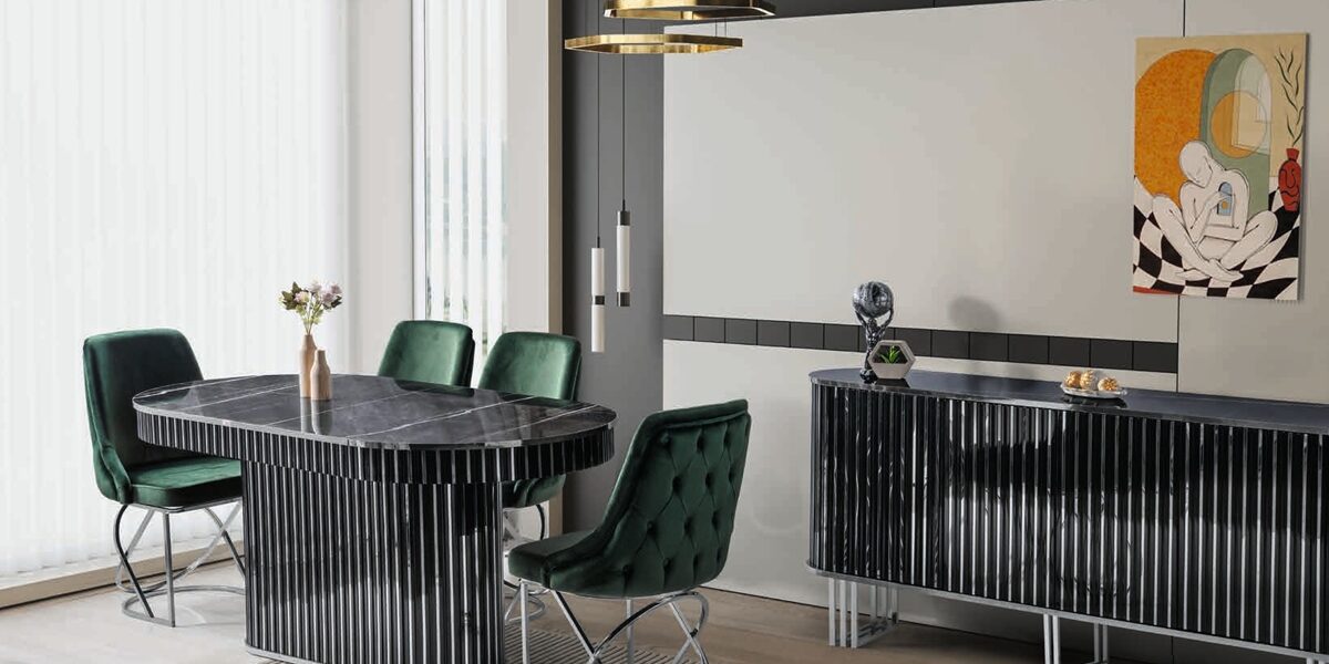 Das NEHİR Esszimmer passt perfekt zu modernen, klassischen sowie luxuriösen Einrichtungsstilen und verleiht Ihrem Zuhause eine besondere Eleganz.