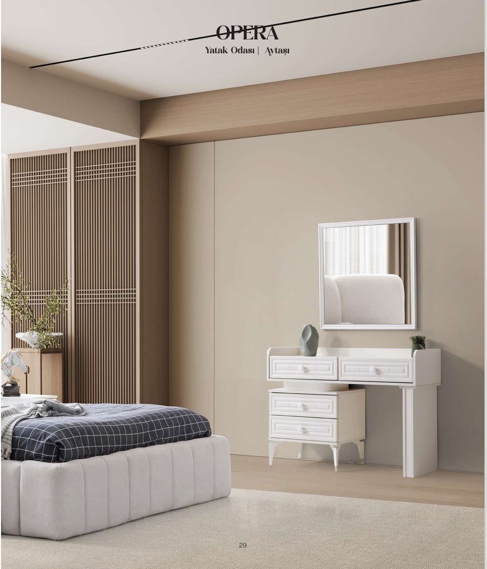 Die Module des OPERA Schlafzimmers sind harmonisch aufeinander abgestimmt und bieten eine perfekte Balance zwischen Design und Funktion. Jedes Element wurde für praktische Nutzung und stilvolle Raumgestaltung konzipiert und fügt sich nahtlos in unterschiedliche Raumgrößen ein.