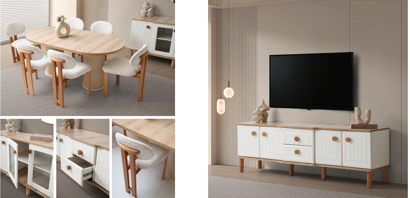 Das Viyana Esszimmer in der Farbe Aytaşı vereint modernes Design mit zeitloser Eleganz. Es schafft eine einladende und stilvolle Atmosphäre für Familienessen und gesellige Momente.