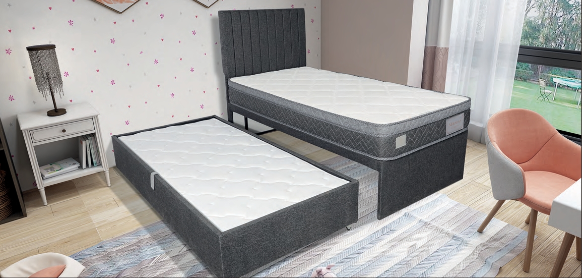 Die YAVRULU Matratze bietet praktische und flexible Schlaflösungen, da sie über ein im Bettgestell integriertes zusätzliches Ausziehbett verfügt. Ideal für Gästezimmer, Ferienhäuser oder Mehrzweckräume, ermöglicht sie die Nutzung als zwei separate Einzelbetten.